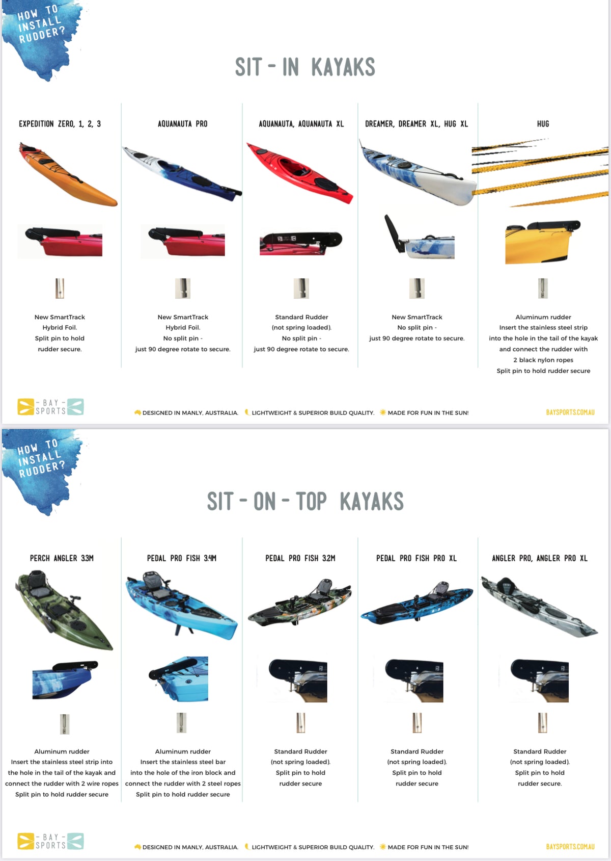 For easy installation, please click here to view which rudder is fitted to your Bay Sports kayak and the method of securing it.