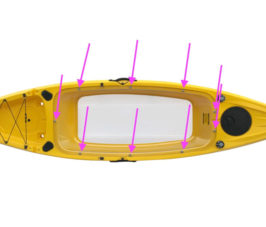 As debris can get in between the clear panel and the kayak hull on the ClearView clear bottom kayaks, there is an easy way to clean it. Simply applying a hose nozzle to the perimeter of the panel (from above the kayak) and blasting water will push the debris back down. If there are larger debris, you can unscrew the clear panel by using an allen key, removing the 9 bolts, allowing you to properly rinse and wipe down both the kayak wall and the clear panel. Warm soapy water is best. This takes less than 5 minutes from start to finish.